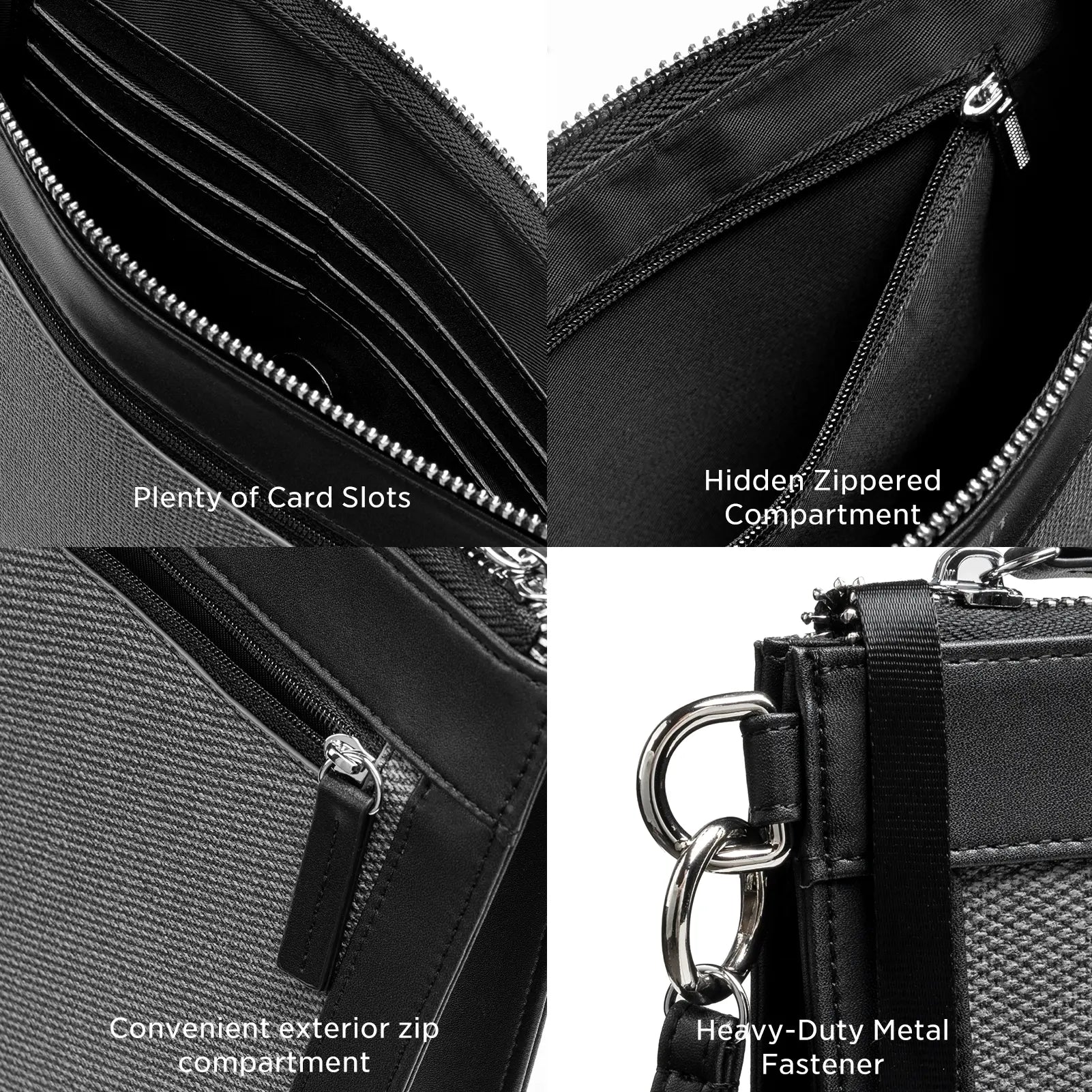 VC302P- Crazy Horse Genuine Leather, Side Slider Mechanism, Back Zipper Slot, Magnetic Strip Closure Tri-fold Wallet