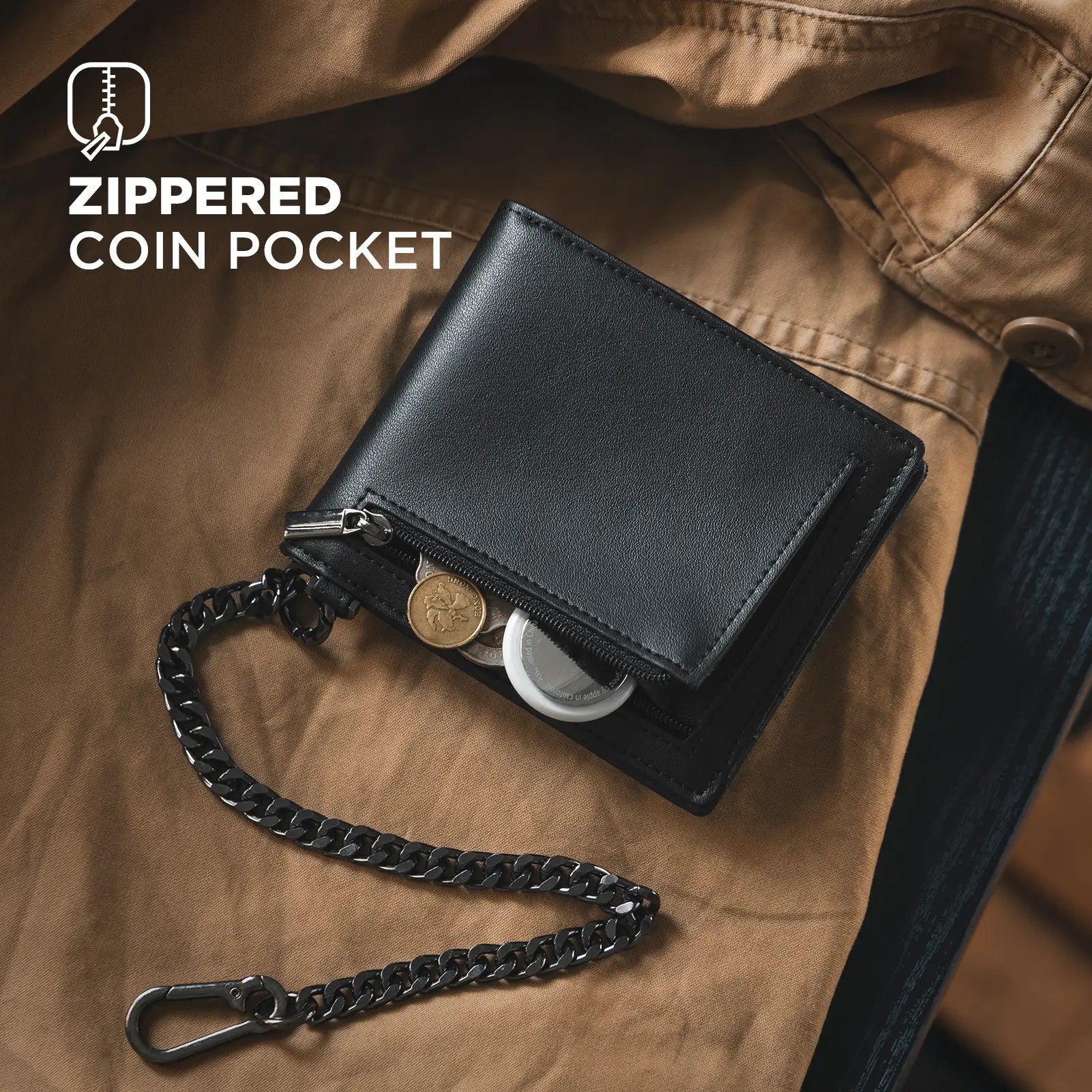 VC302P- Genuine Leather, Side Slider Mechanism, Back Zipper Slot, Magnetic Strip Closure Tri-fold Wallet