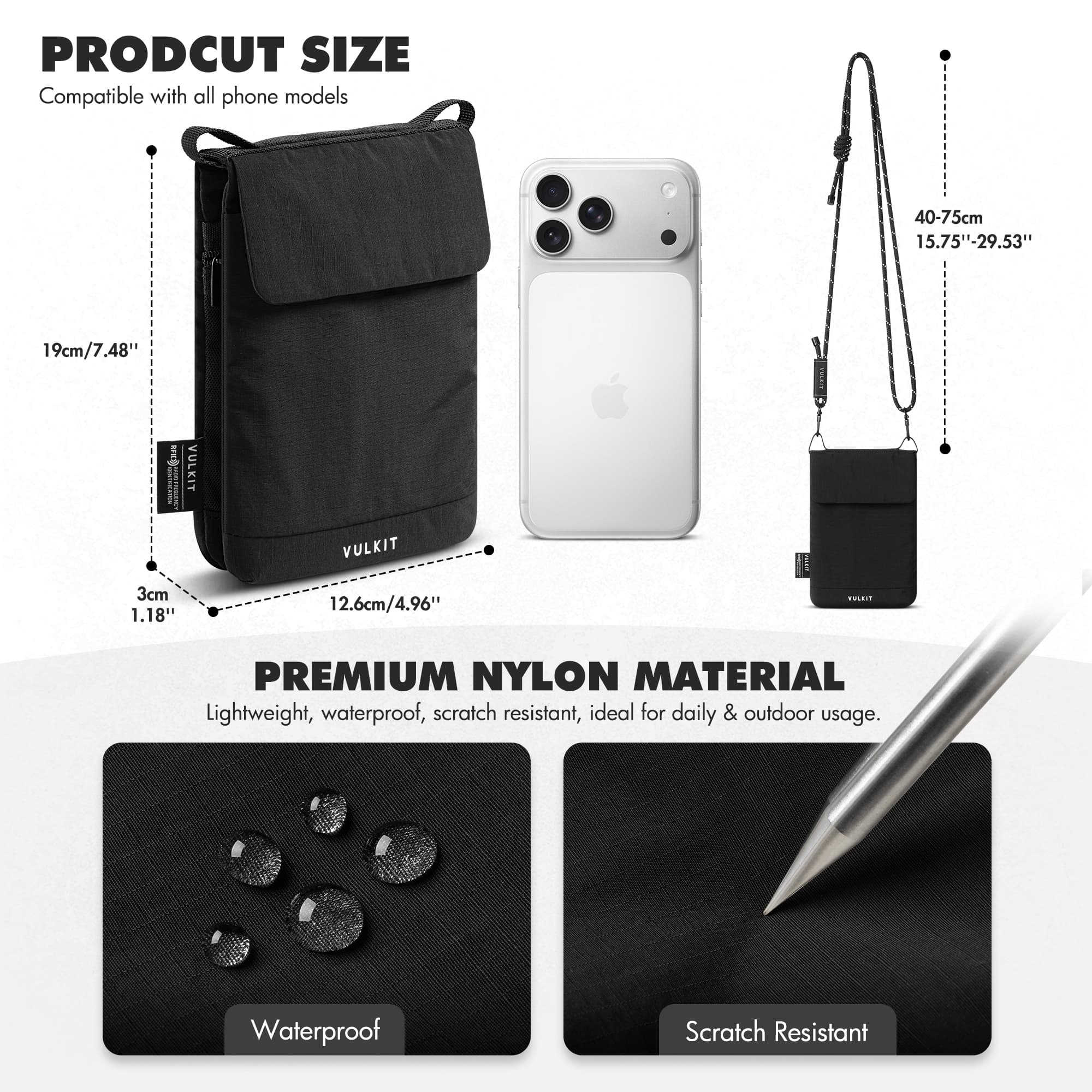 Made from lightweight, waterproof, and scratch-resistant nylon, this VULKIT crossbody sling bag is designed for everyday city carry. Clean lines and a compact silhouette deliver durability without excess.
