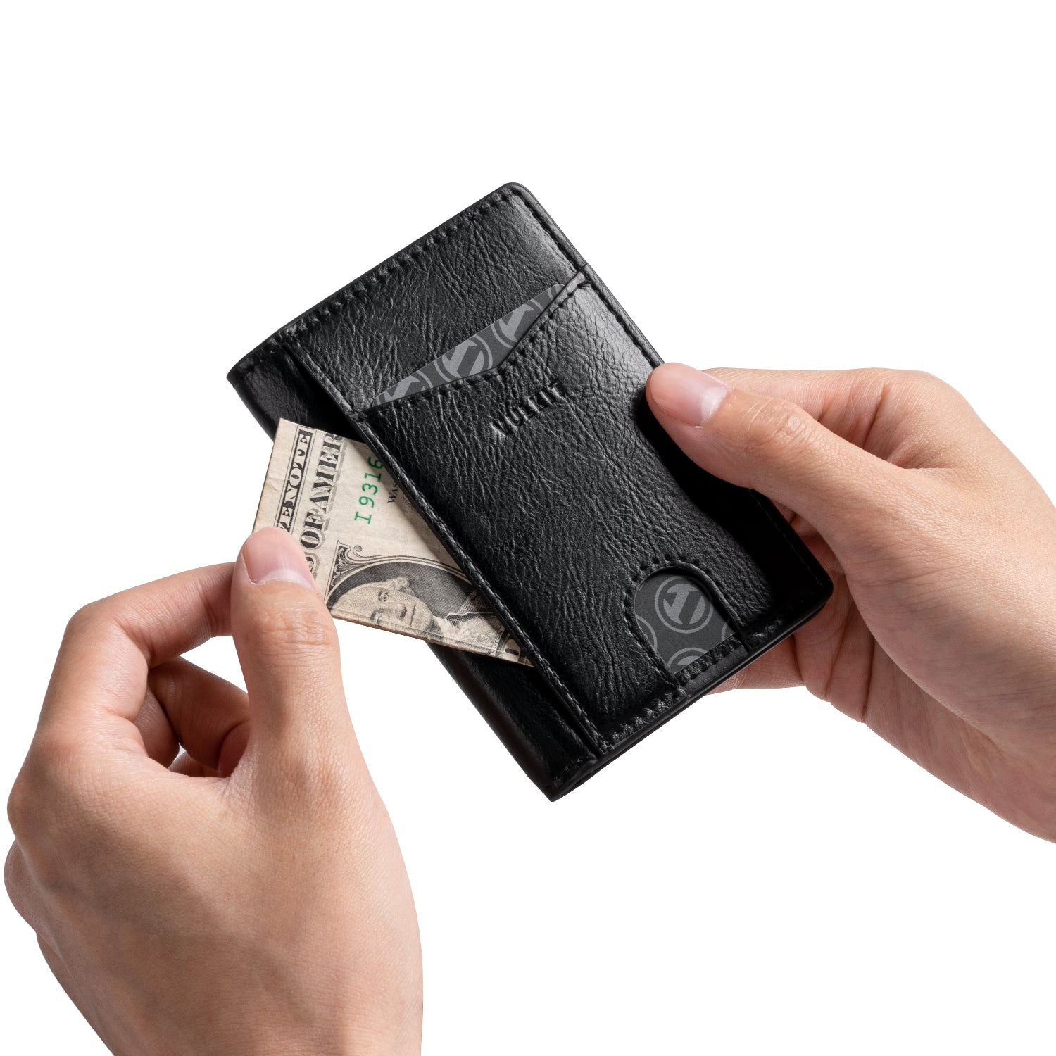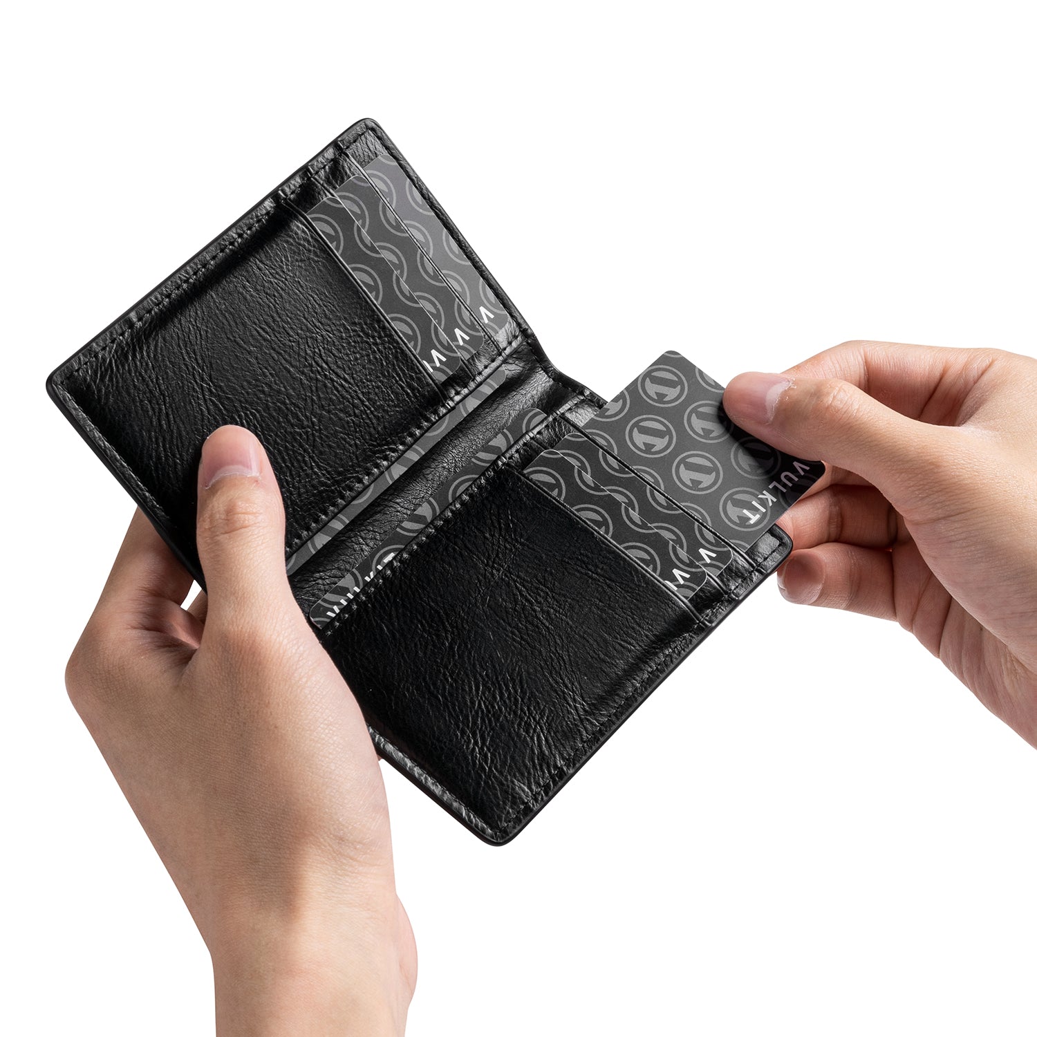 The VULKIT is a minimalist, RFID-blocking wallet. It made of environmentally certified leather and the inner leather lined with specially designed fabric, that effectively block unwanted scan to protect your personal information.