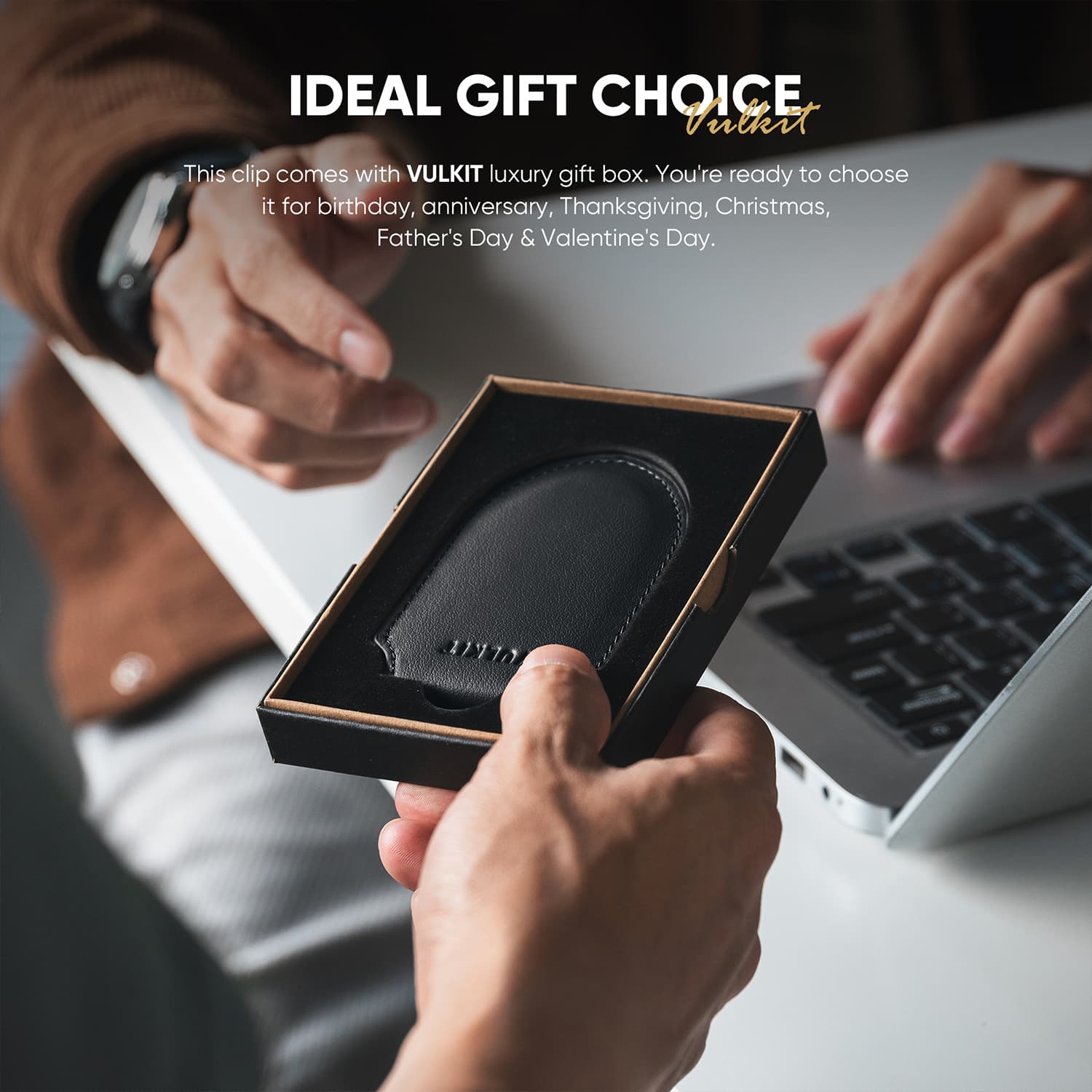 VMC103P - Genuine Leather Money Clip with Magnetic Closure , Minimalist Design Holds Up to 20 Bills