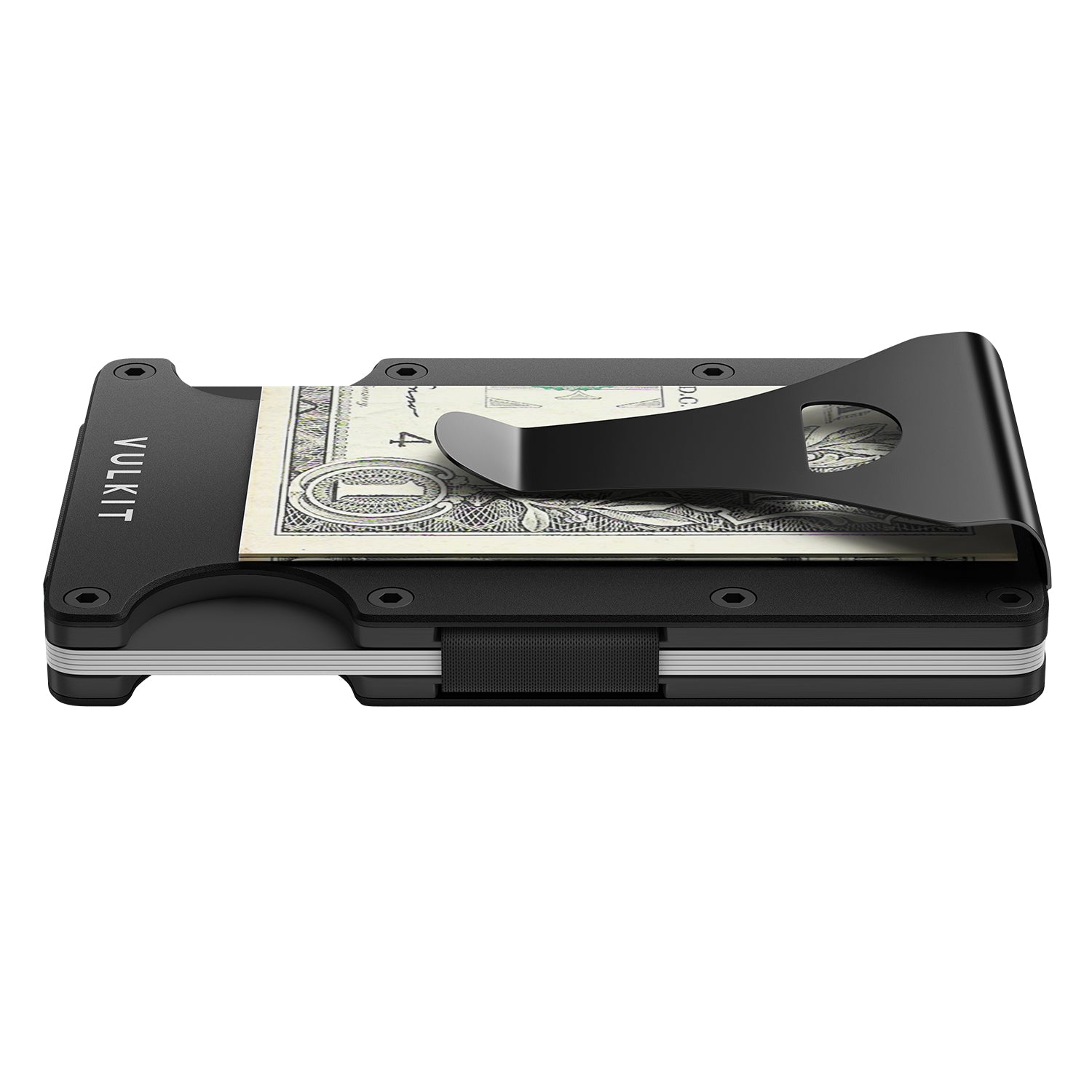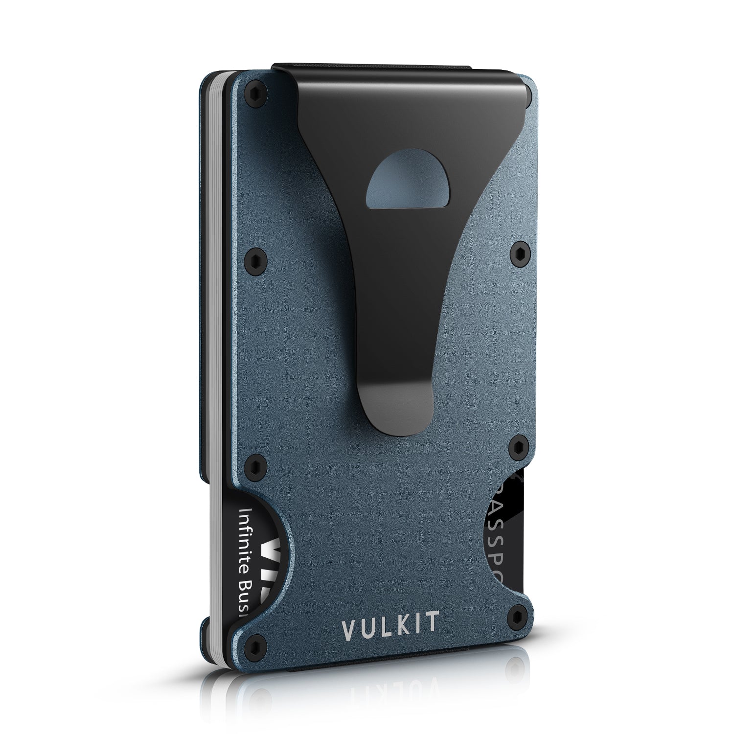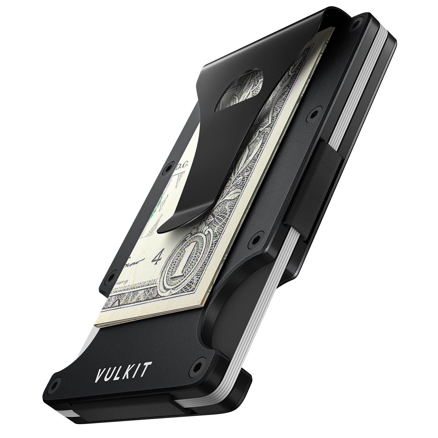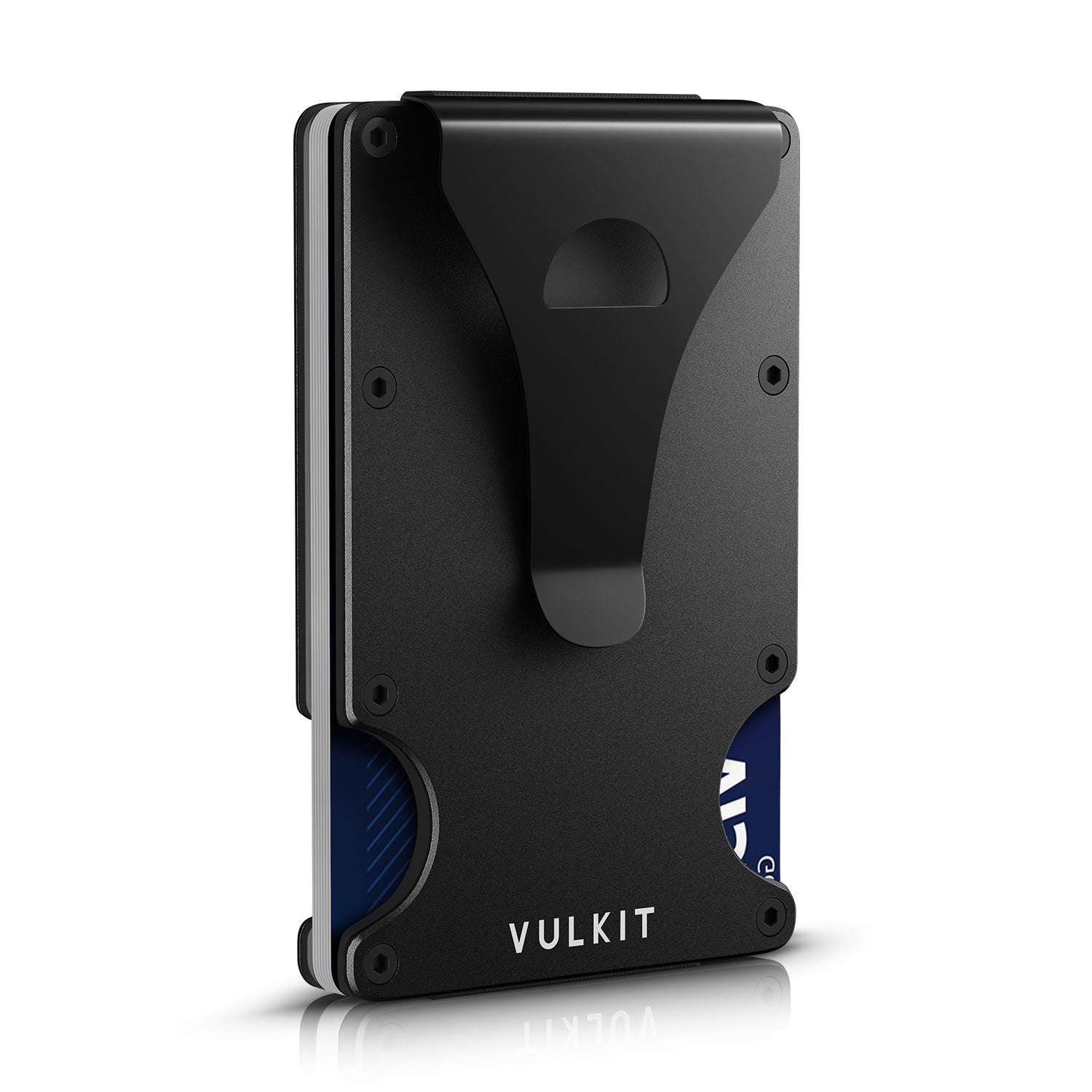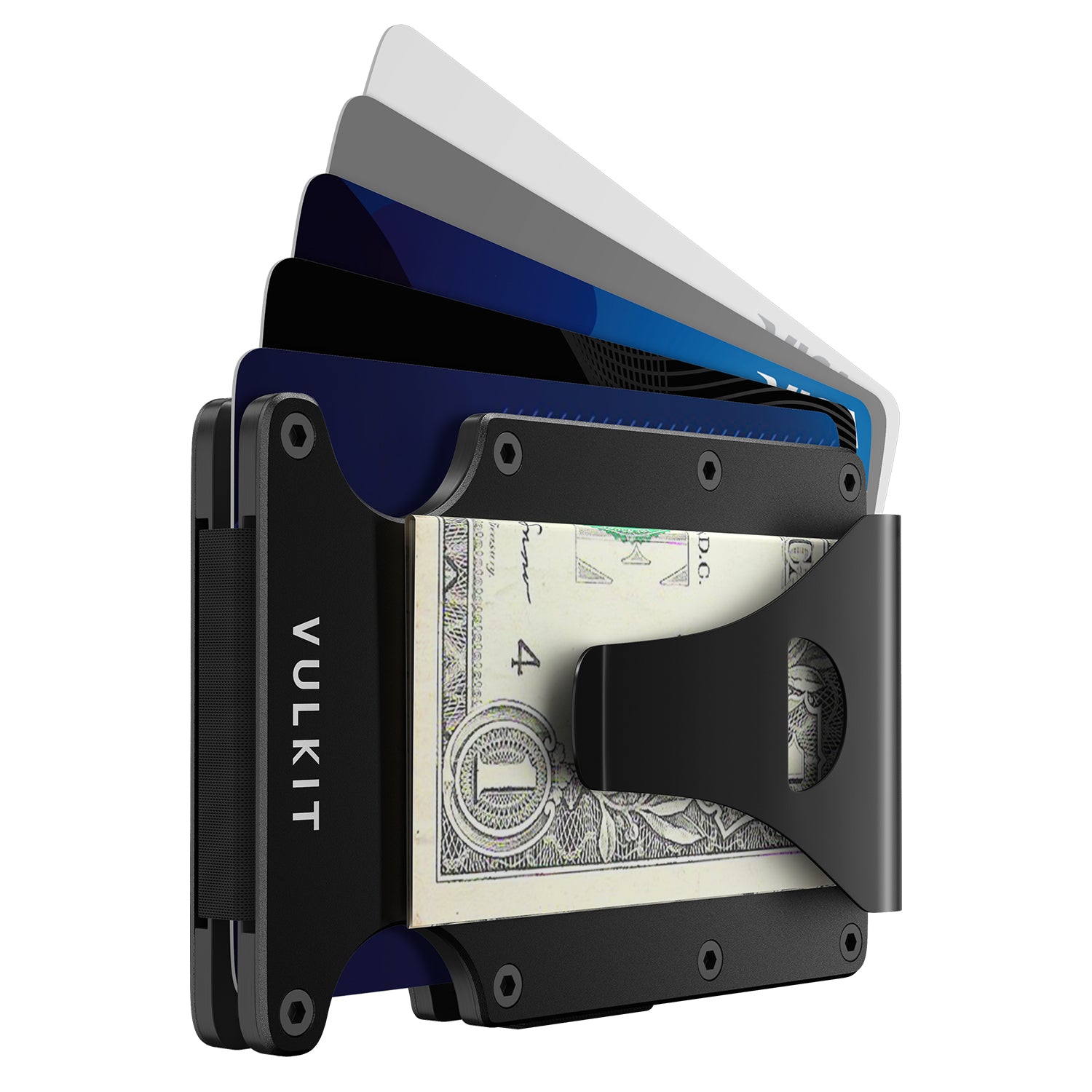 The VULKIT is a minimalist, RFID-blocking wallet. The main cardholder is made of mettal materials and uses elastic to expand to hold up to 12 IDs and credit cards.