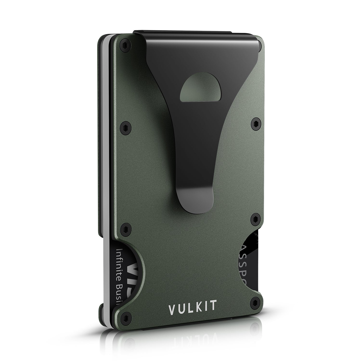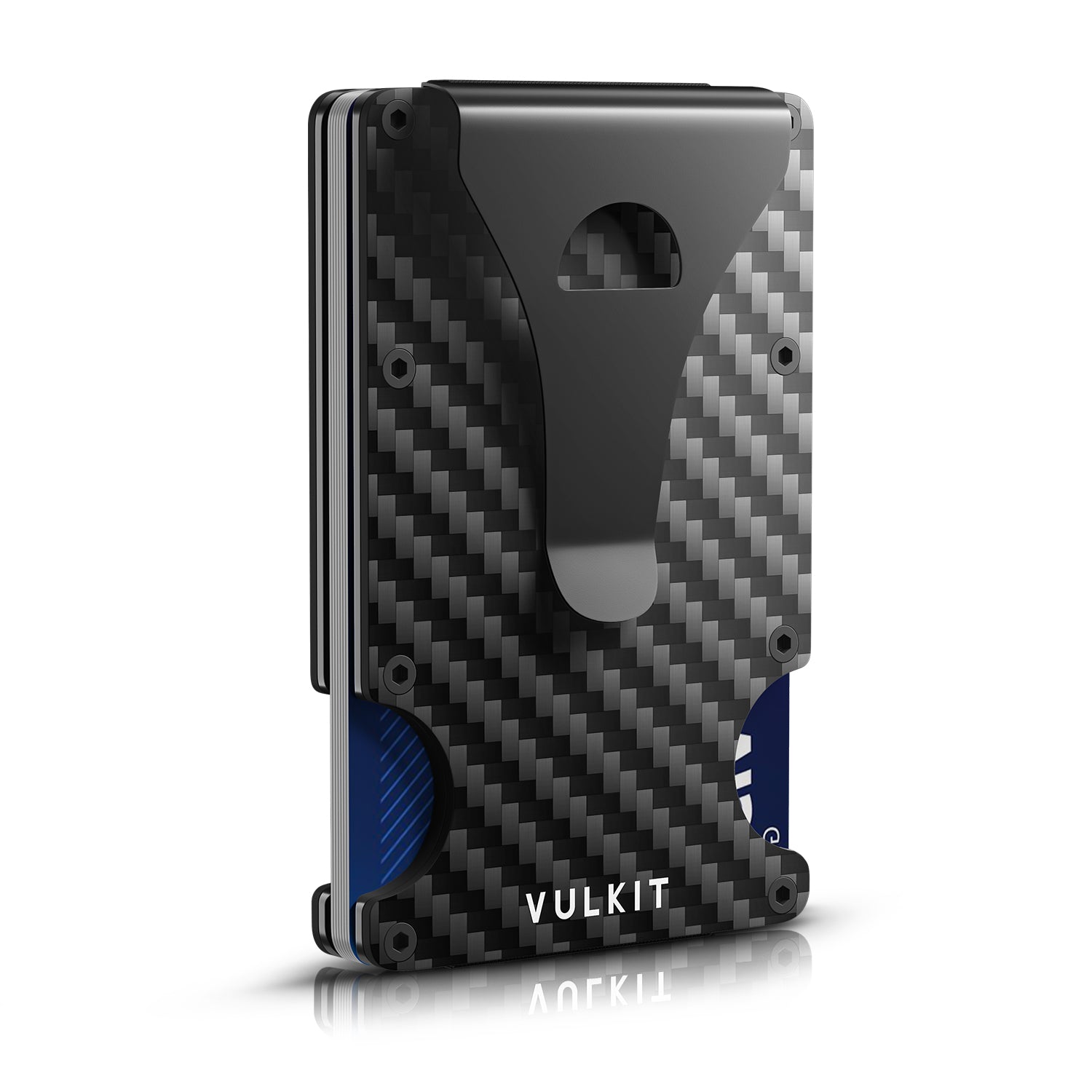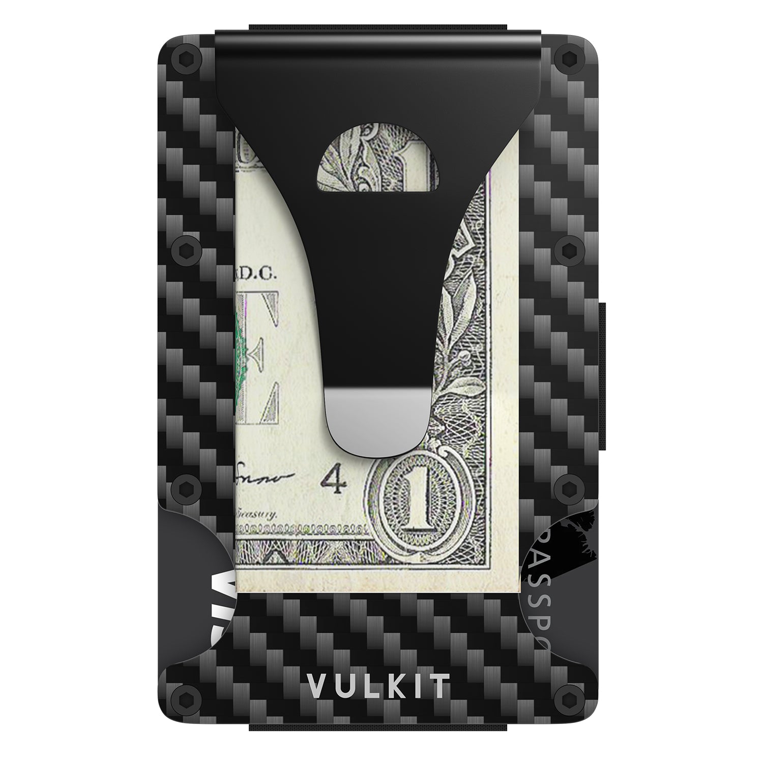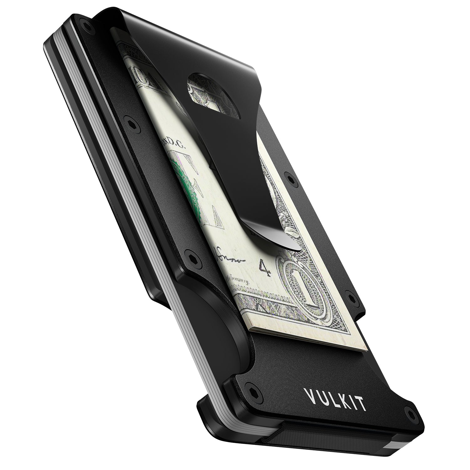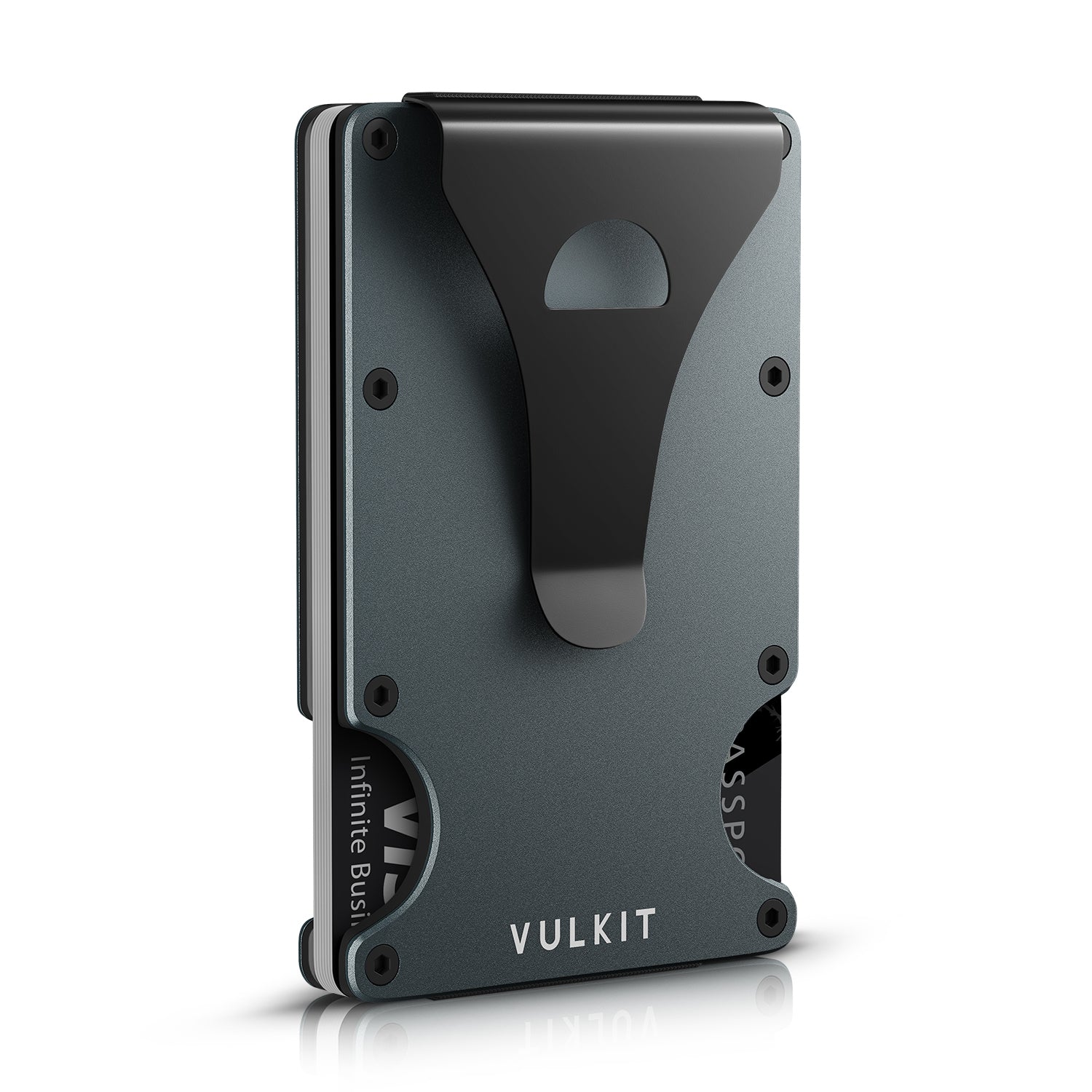The VULKIT is a minimalist, RFID-blocking wallet. The main cardholder is made of mettal materials and uses elastic to expand to hold up to 12 IDs and credit cards.