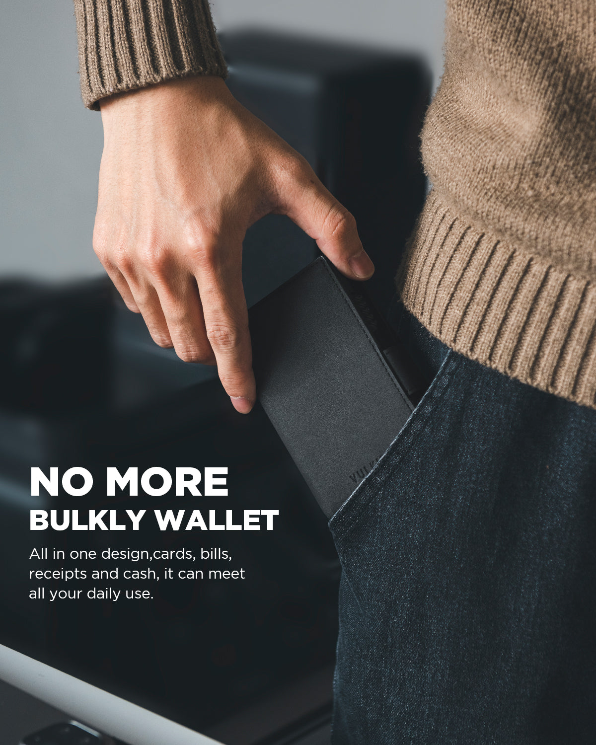 The VULKIT is a minimalist, RFID-blocking wallet. The main cardholder is made of a sturdy aluminum shell to prevent IDs and credit cards from being squeezed and uses advanced aluminum technology to protect credit cards from unnecessary wireless communications; A build-in magnet closure keeps the cards and money held in the wallet not to drop, its compact body is easier to carry and put in any pocket.