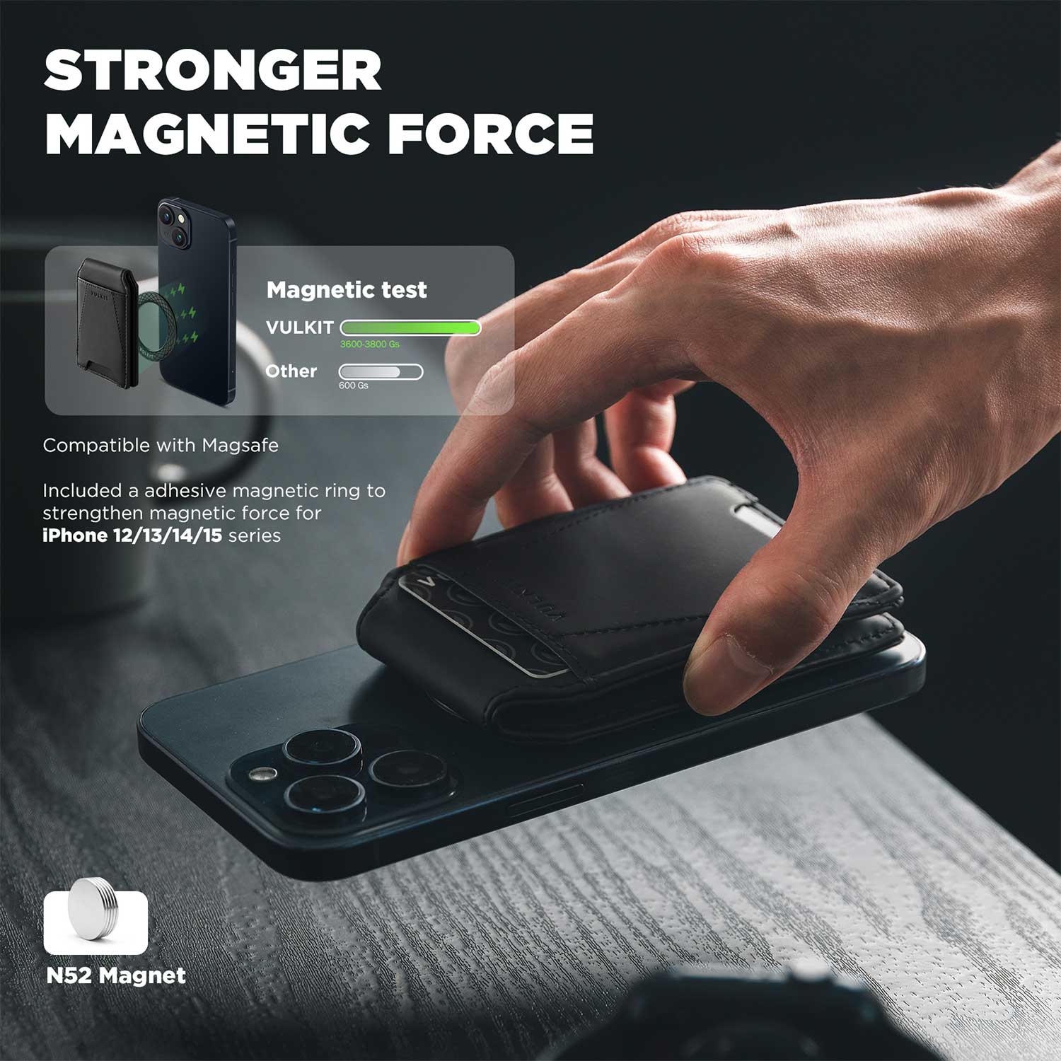 - Powerful Magnet Force - The built-in strongest magnet(N52 magnet) makes the magnetic wallet attached to the your phone securely. The powerful magnetic force is 6X stronger than the official magnetic wallet.