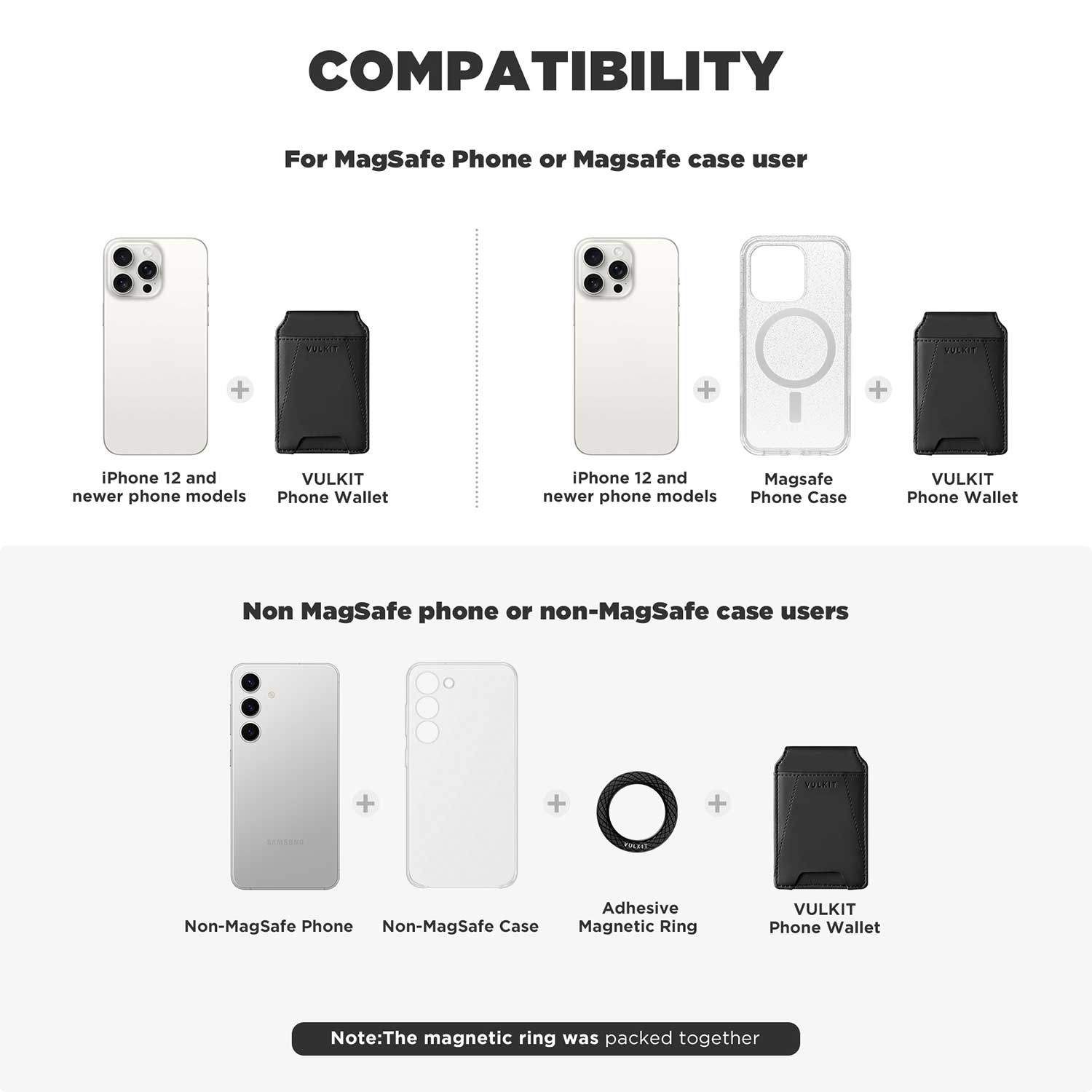 - Compatibility - Compatible with iphone 17/16/15/14/13/12 series and subsequent models, and cases with magsafe. In addition, there are an adapted magnetic ring which could be adapted to attached to your phone or case so that this magnetic wallet could be used on non-magsafe phone models, such as Samsung, HONOR, etc.