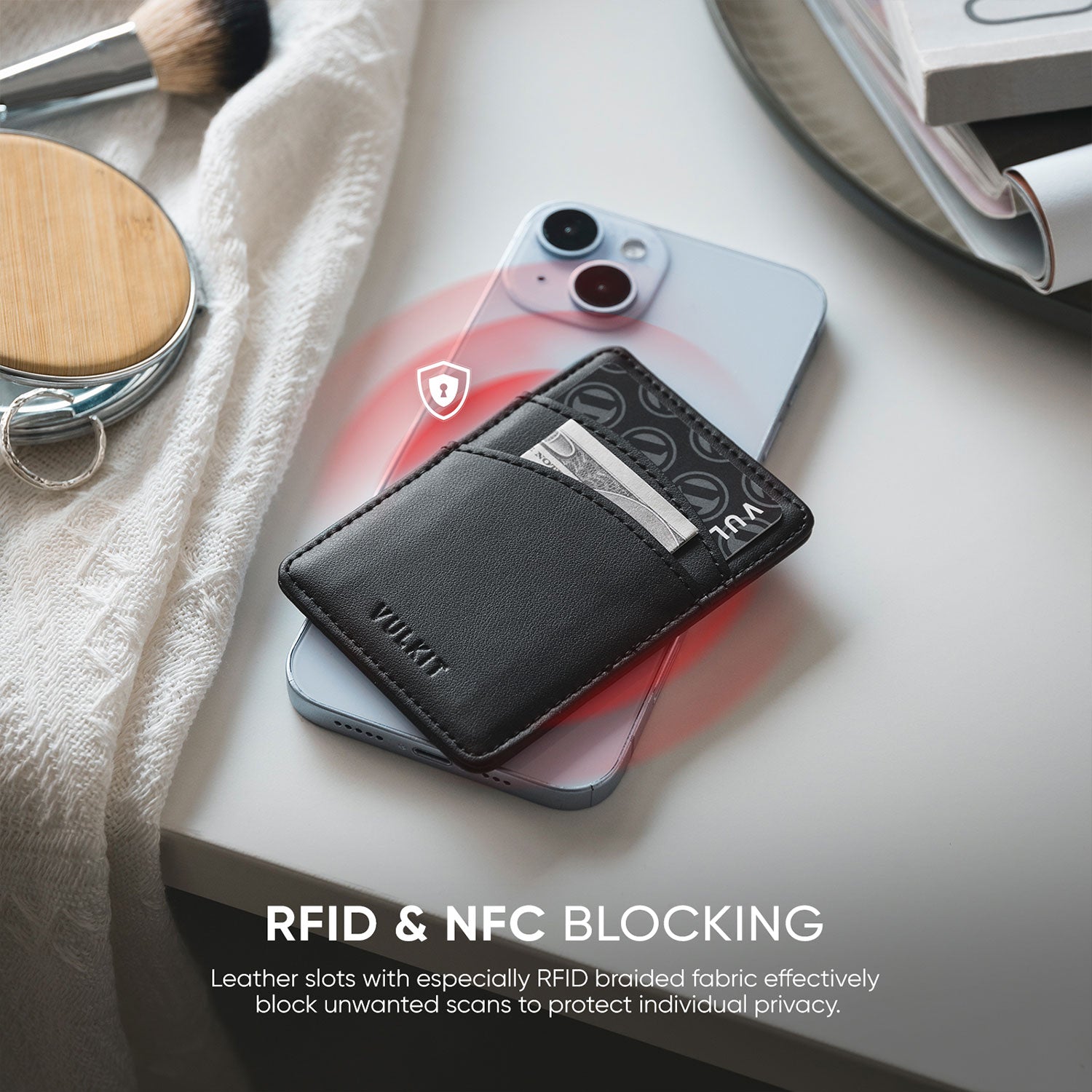 VPA117-Slim Magnetic Leather Phone Card Holder RFID Blocking for Smartphone