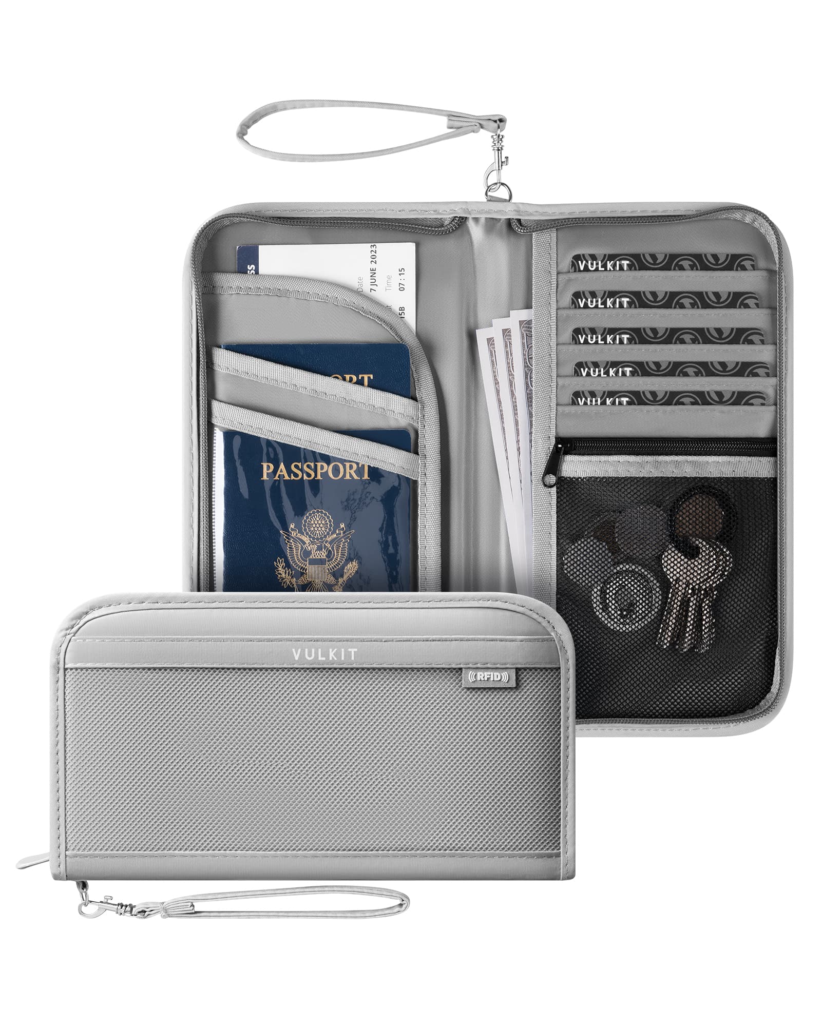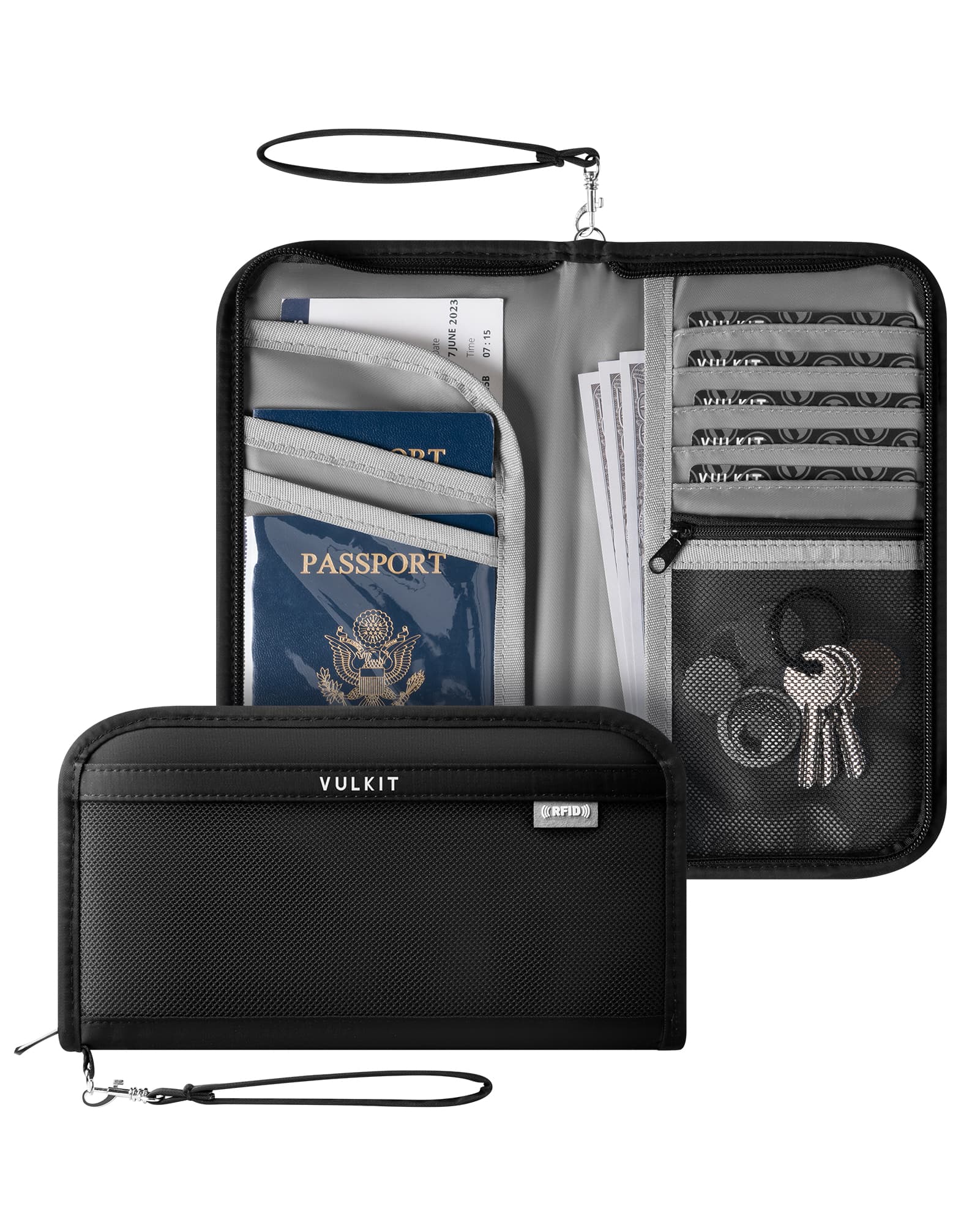 VPW106 - Family Passport Holder, RFID Blocking , Travel Card Organizer with Wrist Strap