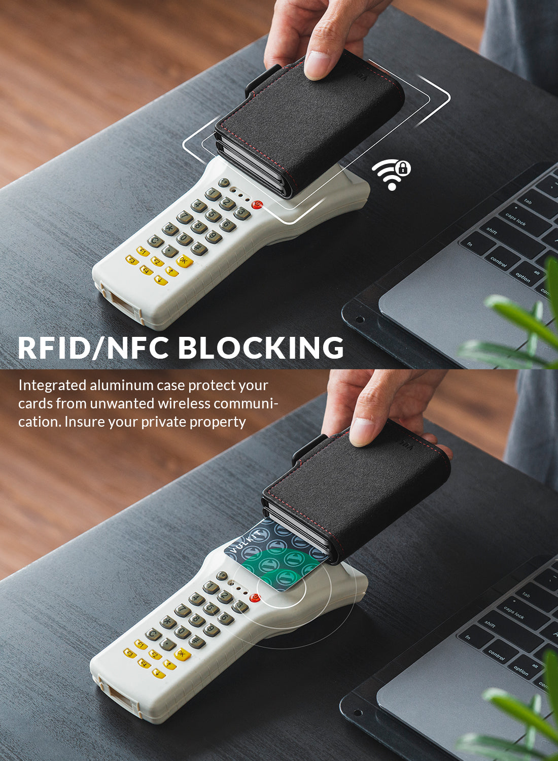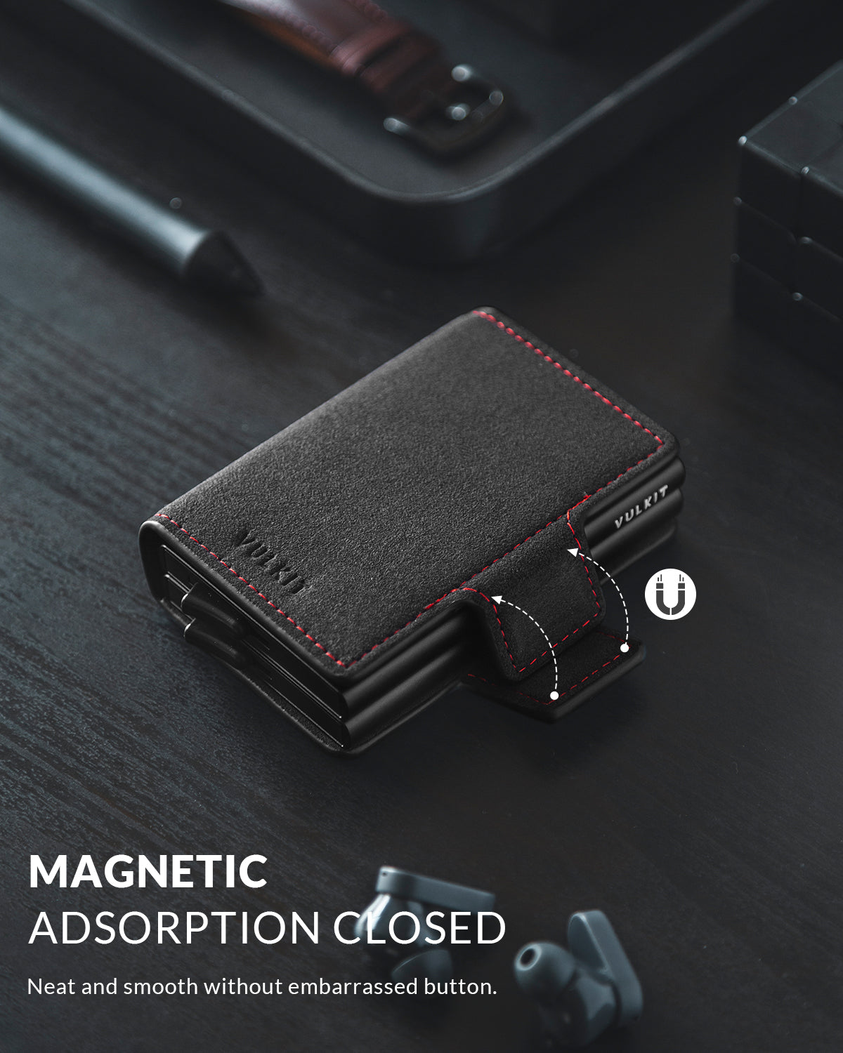 VC200d- Alcantara Leather, Double Aluminum Card Holders For more Storage Wallet