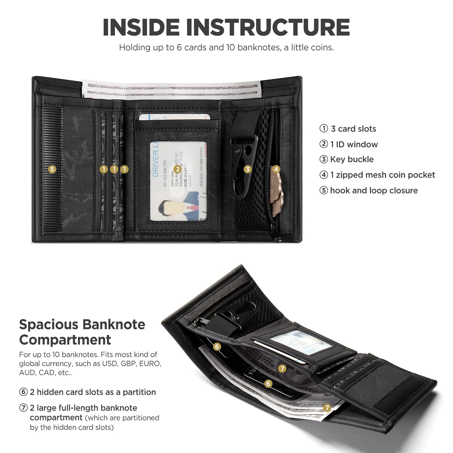 Secure & Versatile Design - Featuring a tri-fold design, this wallet keeps your items organized and easily accessible. Equipped with a detachable key buckle, it can be used as a keychain or attached to your belt or bag for convenience, perfect for outdoor activities like hiking, biking, or casual outings.