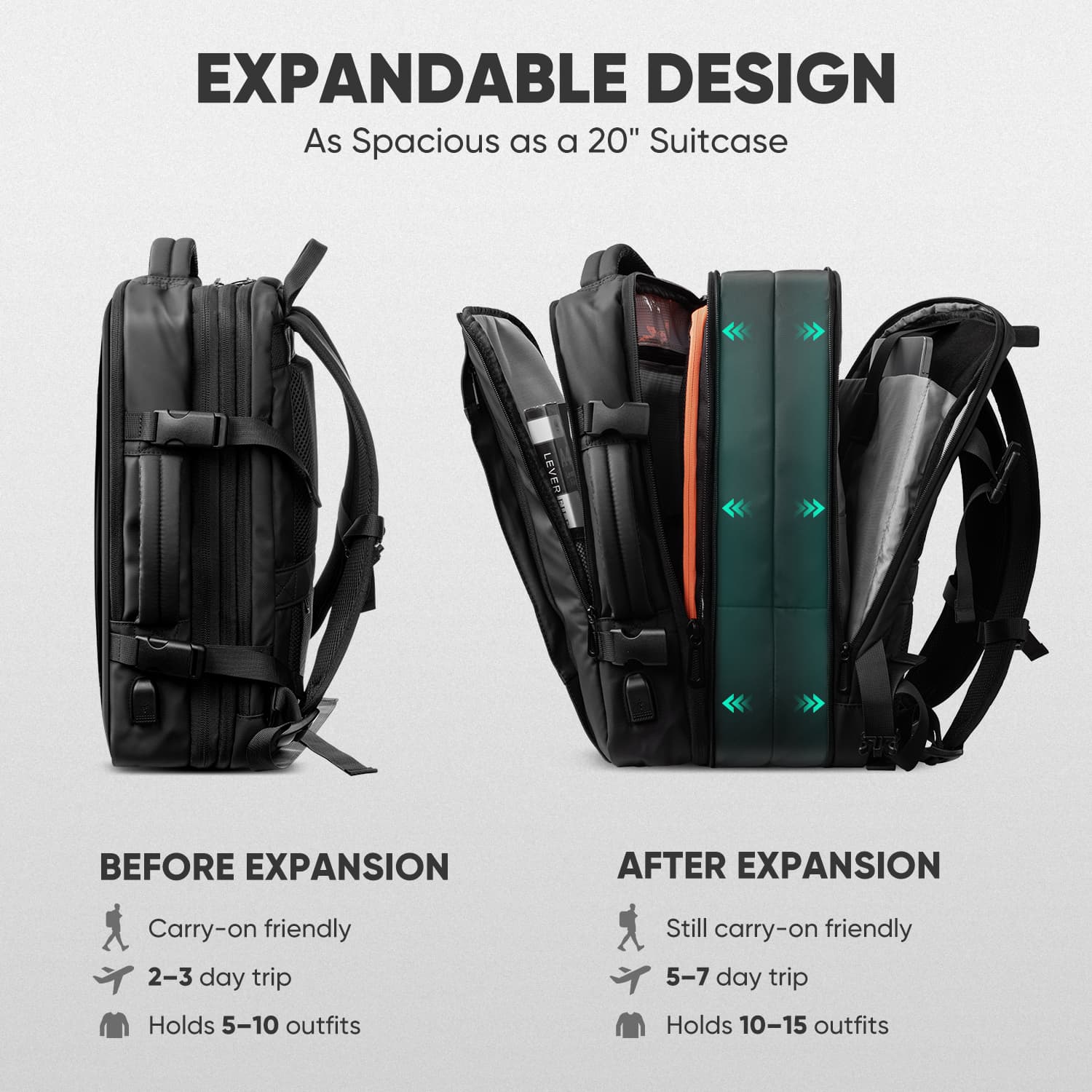 VBP100 – Large Travel Backpack with USB Port, Waterproof, Expandable for Weeklong Trips