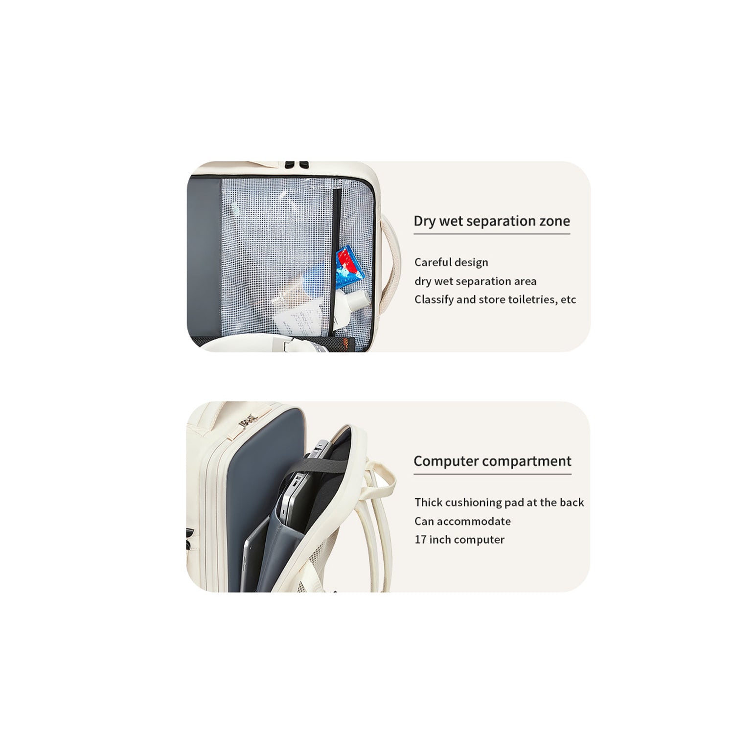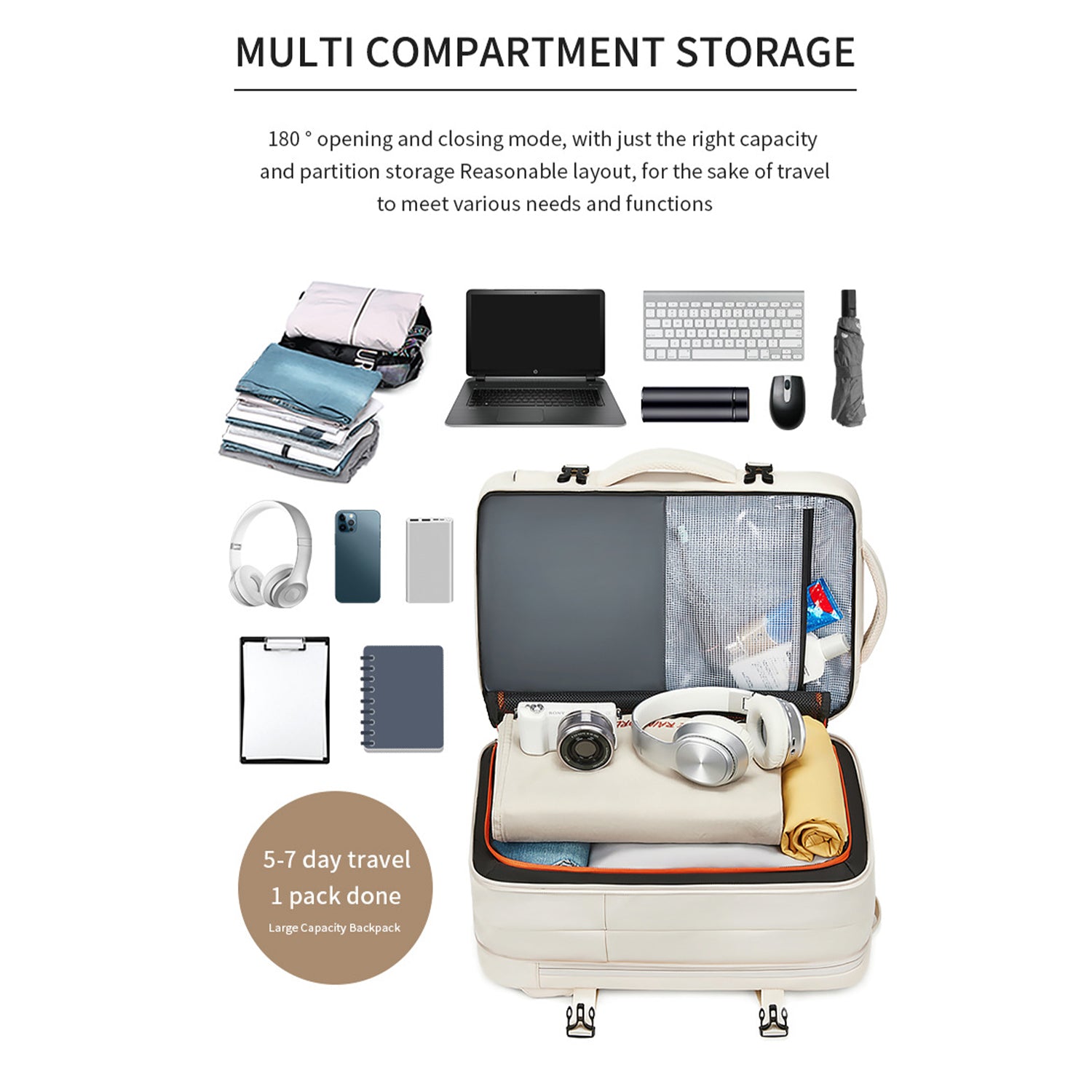 Multifunctional internal design structure that can accommodate 5-7 days of travel items Independent computer compartment, capable of accommodating 17-inch computers