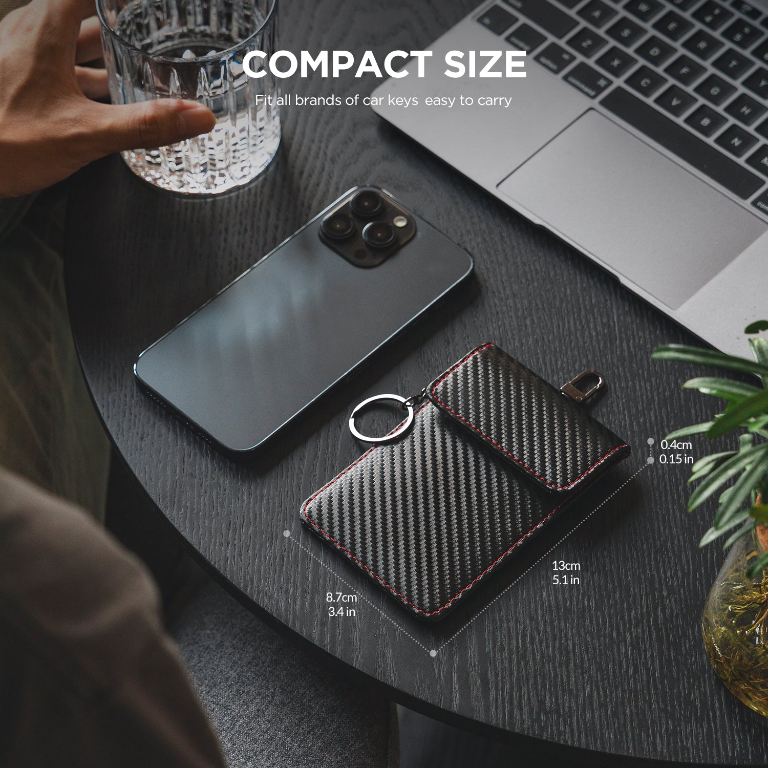 - Portable Design-The attached keyring provides security and convenience by keeping your keys safe and easily accessible. The top hook can be attached to your belt or bag. This key fob signal blocker is easy to carry and offers a minimalist style.