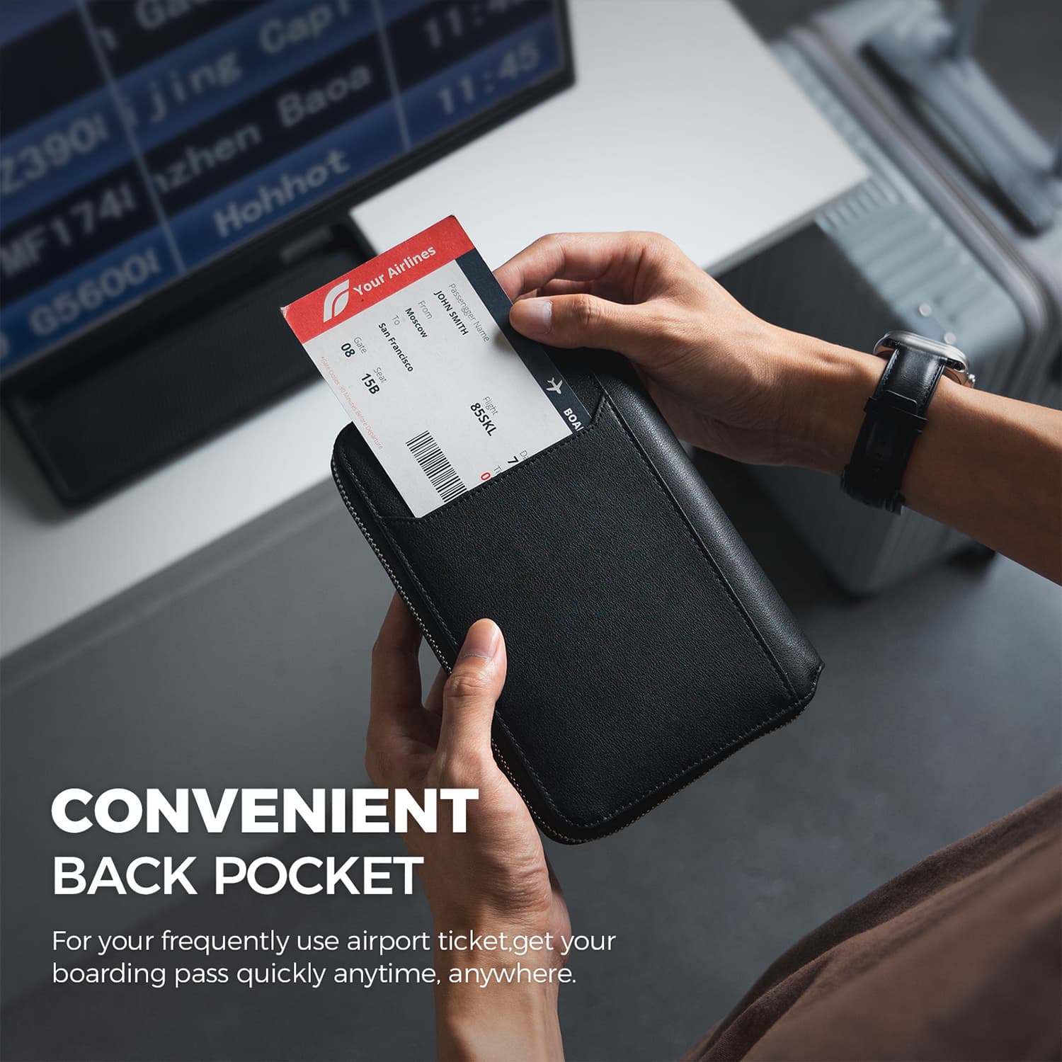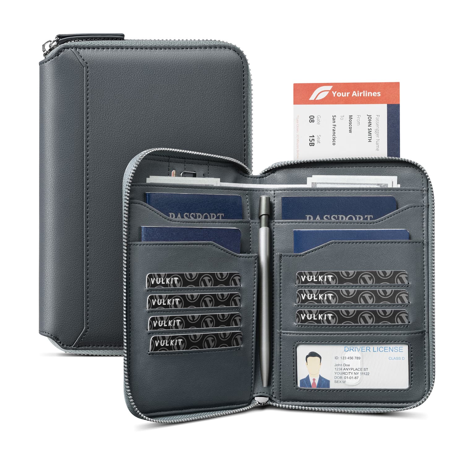 VPW107 - RFID Blocking Family Passport Holder for 4-8 Passports, Zipper Travel Wallet & Document Organizer