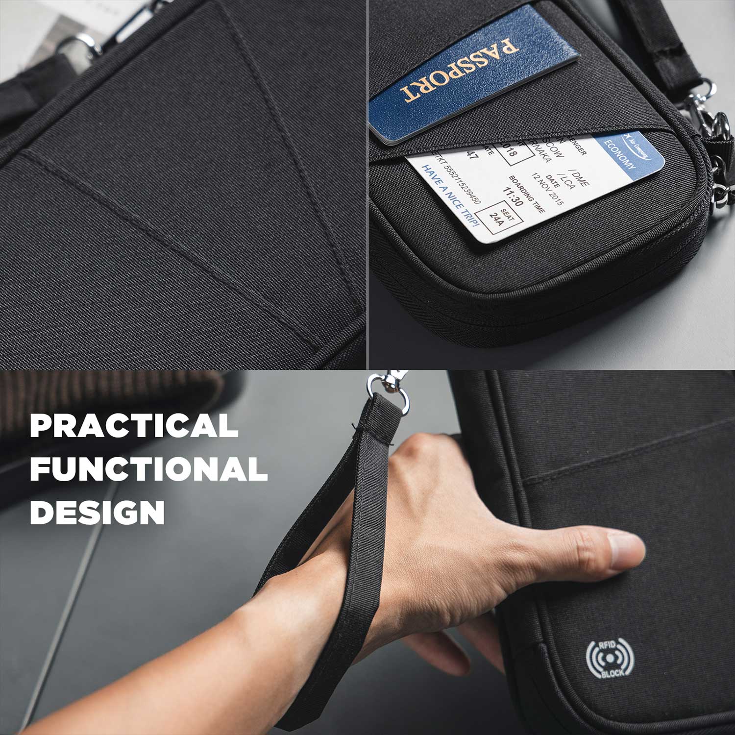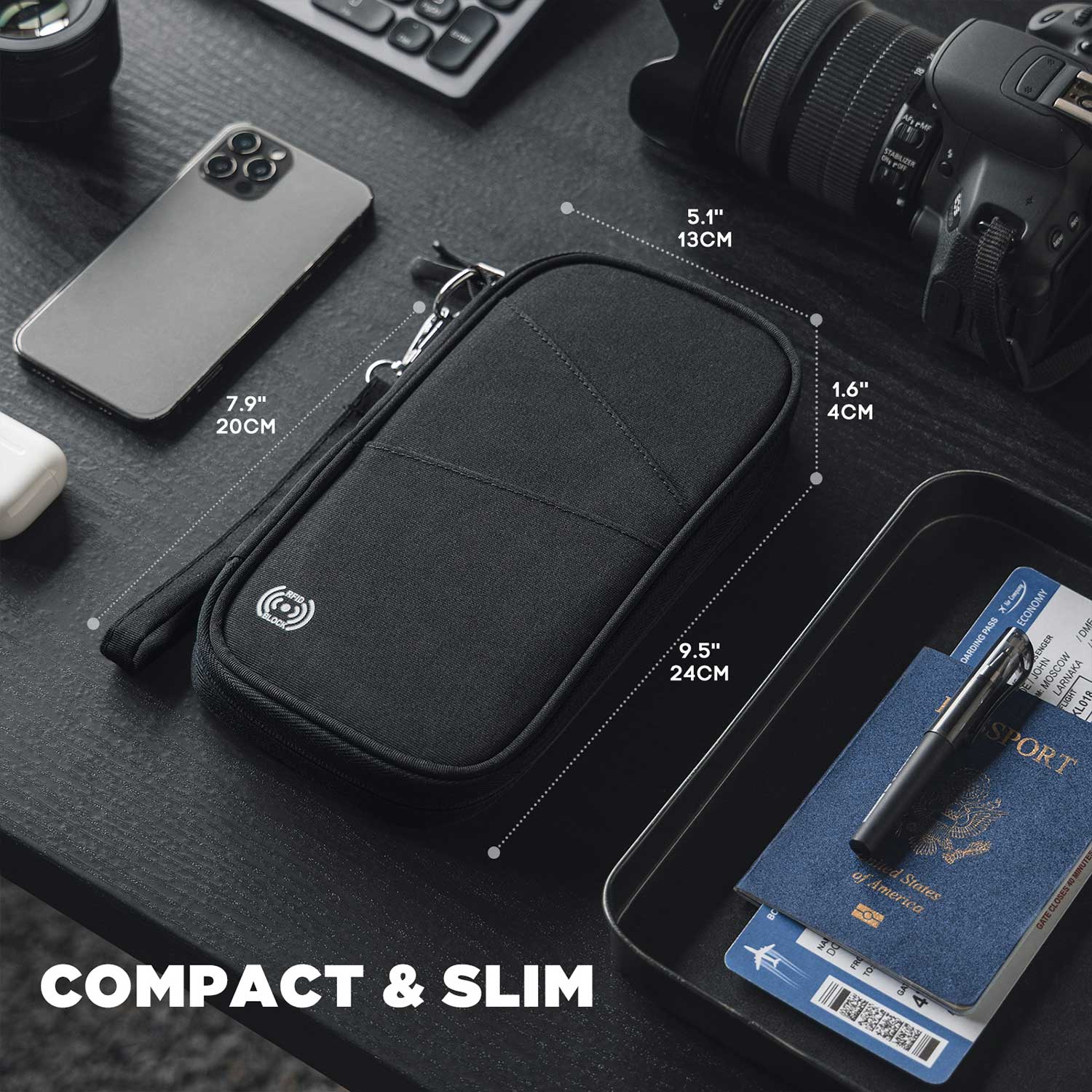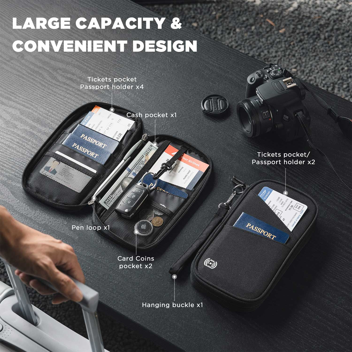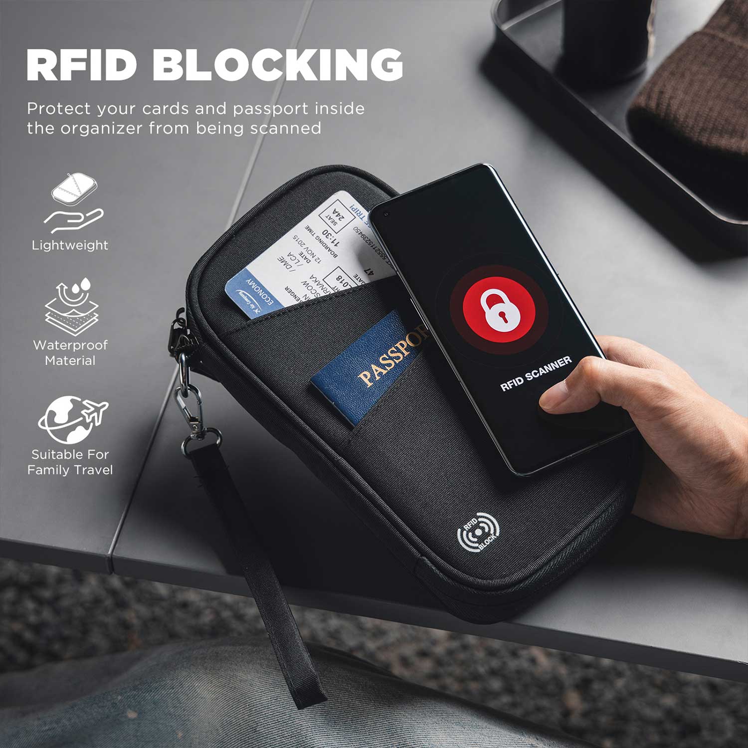 RFID Blocking - Equipped with advanced RFID blocking technology, this organizer protects your cards and passport from being scanned and electronically stolen. Its lightweight and waterproof material makes it ideal for family travel.