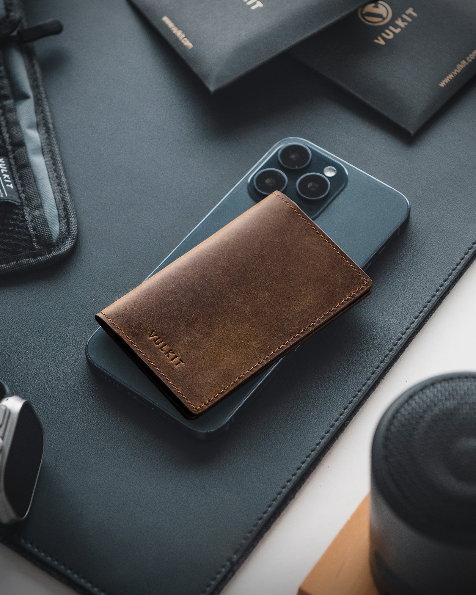 VBC100P- Crazy Horse Genuine Leather, 2 Sided Slim Business Card Holder, Up to Hold 20 Cards