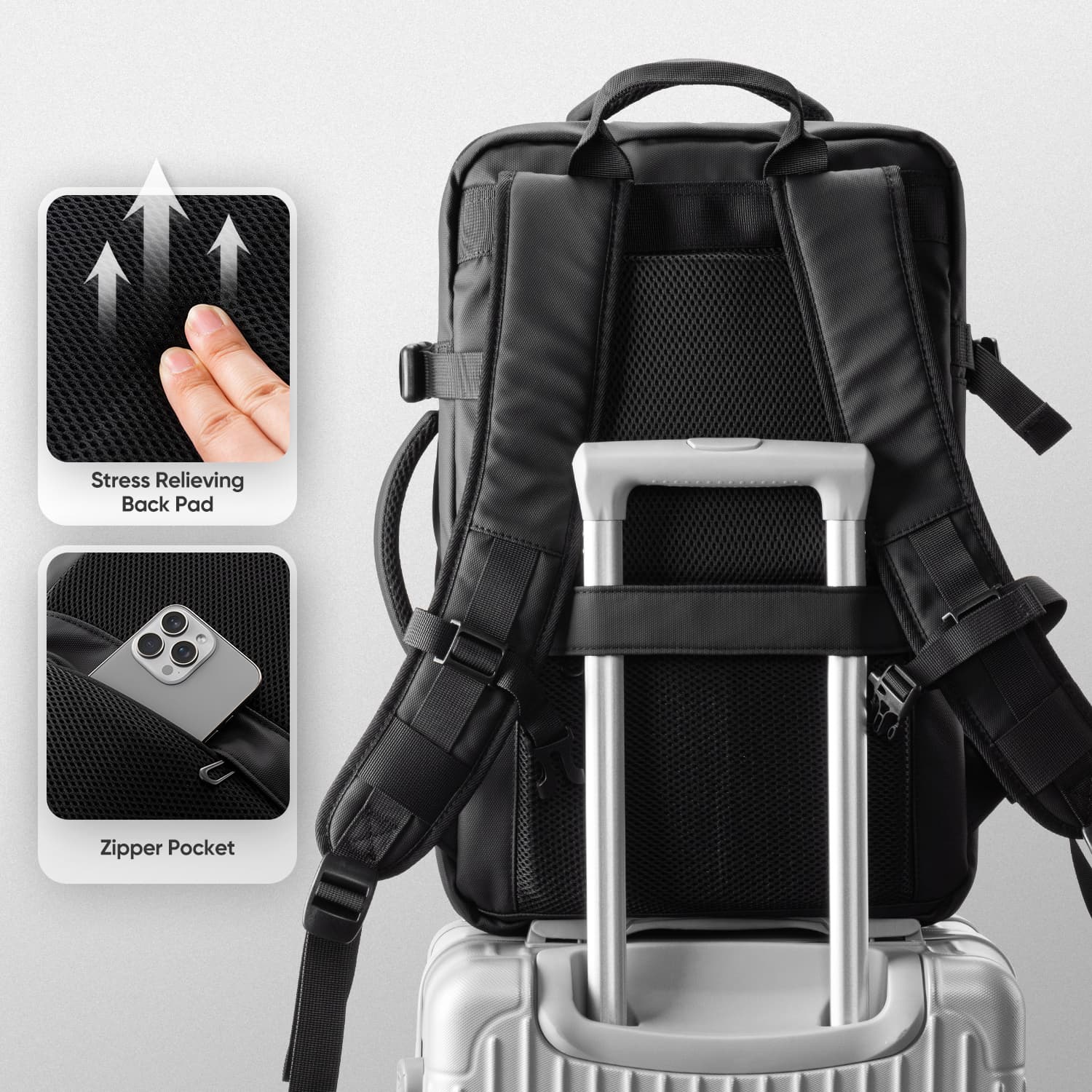 Expandable Design – From Daily to Travel-Ready:Easily switch from 23L to 39L with a single zip. Spacious enough for 5–7 days of travel, replacing your carry-on suitcase.