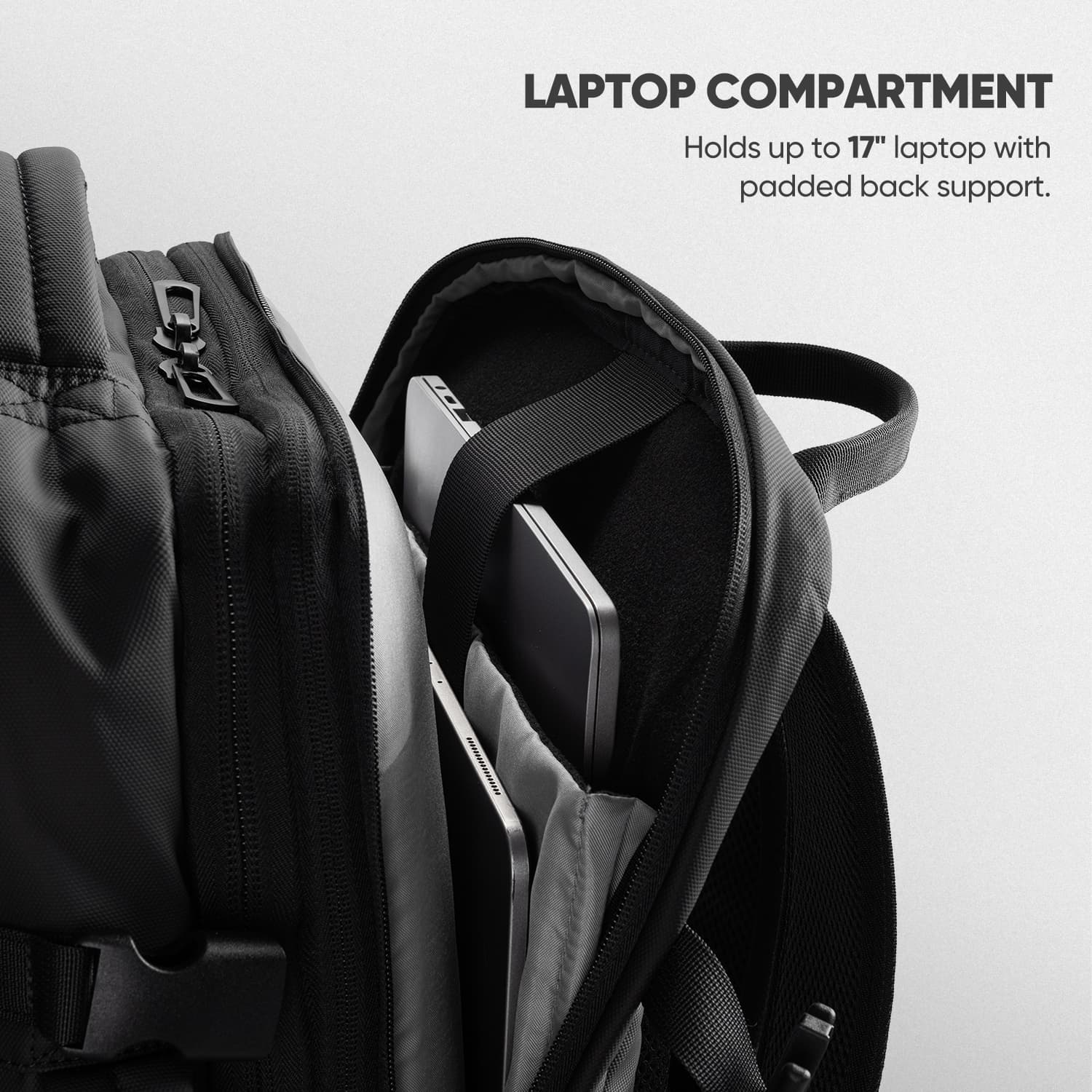 Smart Storage Compartments:Includes a padded laptop sleeve (fits up to 17" laptop + 10.9" iPad), dry-wet separation, and multiple zippered pockets for organized packing.