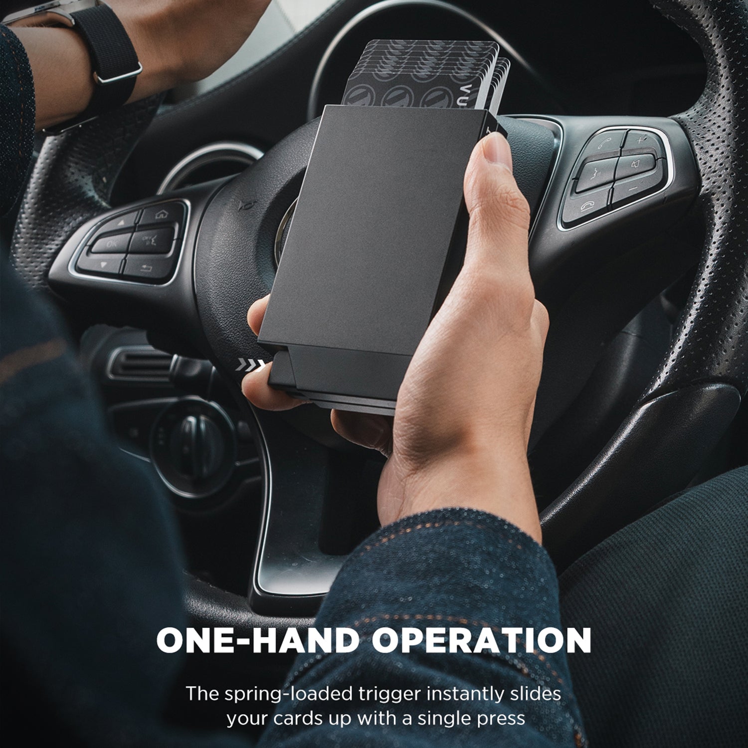 DOUBLE EJECTOR DESIGN – This upgraded version features two patented pop-up ejectors, doubling the storage and convenience. Effortlessly access cards from either side—perfect for organizing work & personal cards or separating frequently used ones.