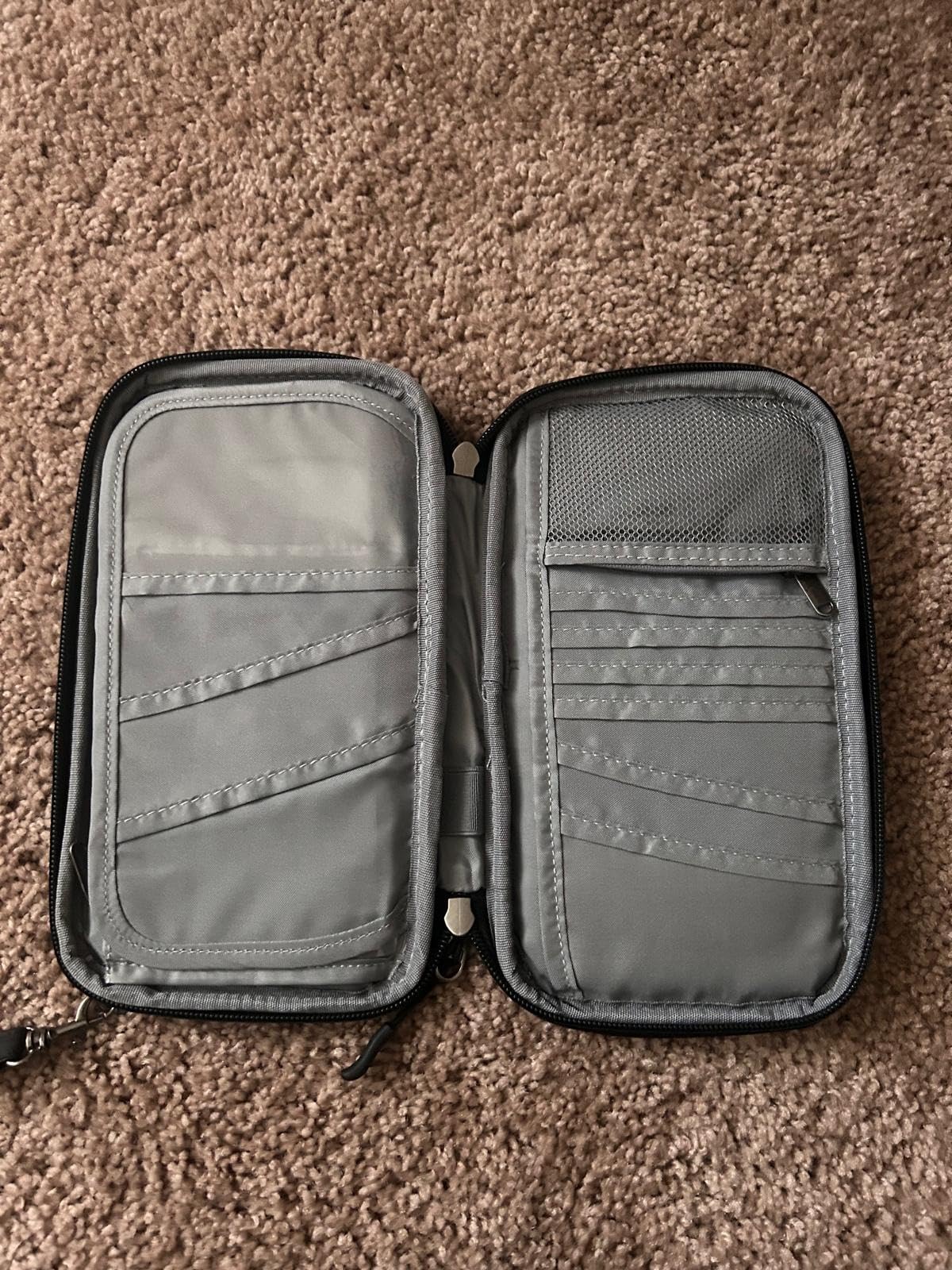 - Large Capacity - This family passport is a perfect fit for families. It is designed with 4 passport holders, 11 credit card slots, 1 visible ID window, 1 zipped coin pocket, 1 pen slot, 1 clear ticket pocket and a stash cash pocket in zipped.