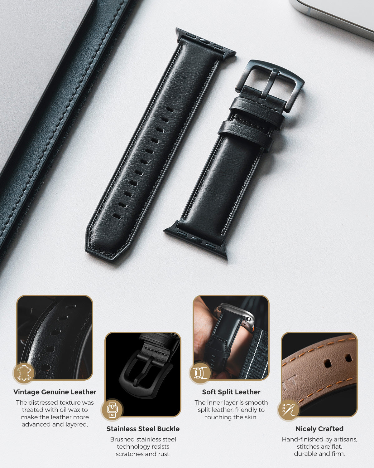 - A PERFECT GIFT- It can be men's or women's daily accessories or perfect as a gift. A genuine leather watch strap 38mm 40mm 41mm compatible with iwatch SE series 8/7/6/5/4/3/2/1. Please note that it does not include the watch and protector case.